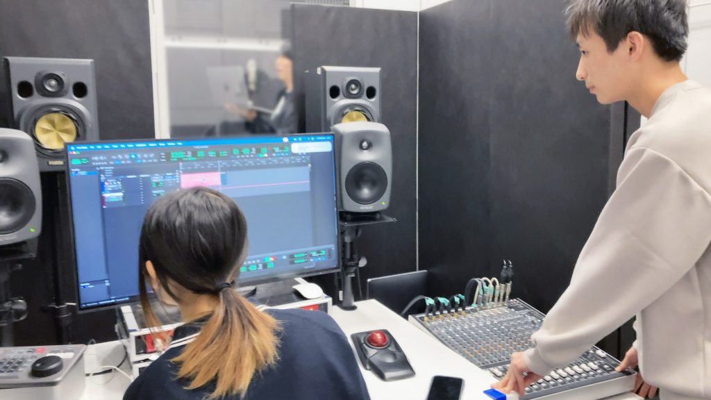 本科目は、本学専任教員の坂本昭人准教授主導のもと、音楽・音響分野のリーディングカンパニーであるヤマハ株式会社、先端テクノロジーを駆使した音楽制作を行う株式会社Moonbow Musicにご協力いただき、独自の立体音響サウンドストーリーを制作しました。