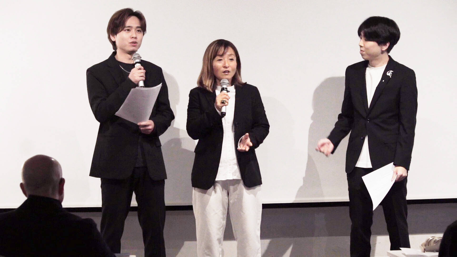 当日の司会進行は本学英語教員の江幡 真貴子特任教授、学部2年の正木 千尋さんと末吉 琢磨さんが担当しました。また、2024年に学生アカデミー賞において日本人作品として初めて銀賞を受賞した 金森慧さんを特別審査員に迎え、学生の発表に対して講評をいただきました。