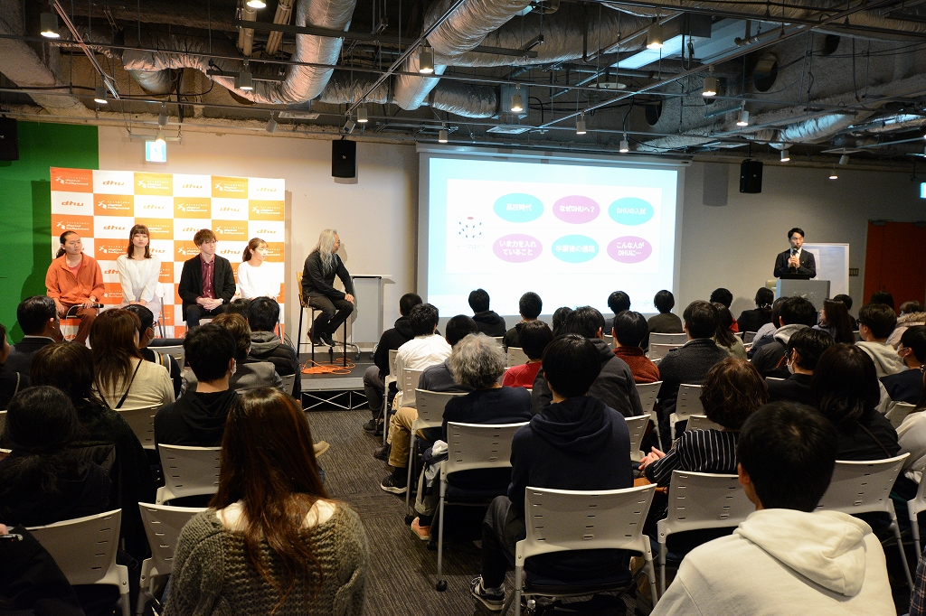 在学生の活動報告を受けて、コメンテーターとして参加した杉山学長は「DHUの学生は「好き」を突き詰めることに長けている。合コンにお金を使うくらいなら新しい機材を買う、みたいな学生が多いんじゃないかな。今までのスキルは関係ない。努力は必要だけど、自分の「好き」を掘り下げて、とりあえずやってみる!というタイプの人は特に向いている大学」と語りました。