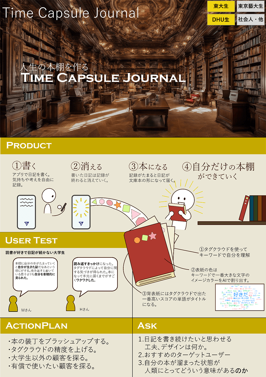 山口:「秘密の図書館を作ろう」というプロジェクトです。仕組みとしては、スマホのアプリで日記を書くと、AIがその内容を要約してくれて、定期的にそれが物理的な「本」になって自宅に届くというサービスを開発しました。