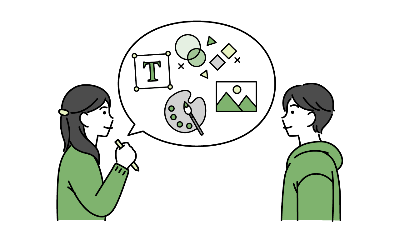 グラフィックデザインとは、文字や色彩、図形、写真など、さまざまな視覚的要素を組み合わせて表現を行うデザイン分野です。「芸術的なセンスがすべて」と思われがちですが、実際には課題や問題を解決するための「視覚によるコミュニケーション手段」という側面が大きく、論理的な思考力や情報を整理する力も重要視されます。