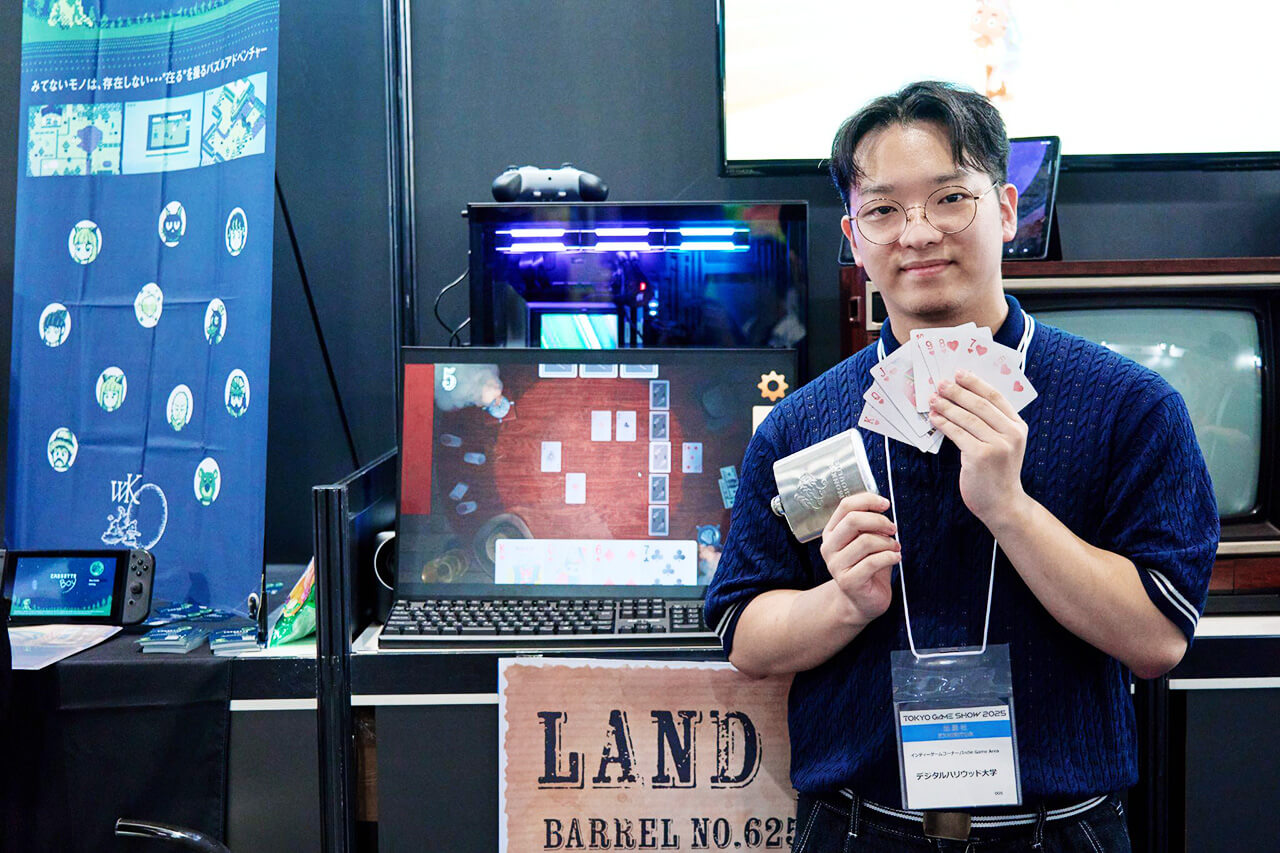 2025年9月に開催され、国内外から約26万人が来場したアジア最大級のゲームの祭典「東京ゲームショウ2025」。その熱気あふれる会場には、デジタルハリウッド大学の有志学生により結成された「デジタルハリウッドゲームズ(DHG)」による5つのオリジナルゲームが展示されました。